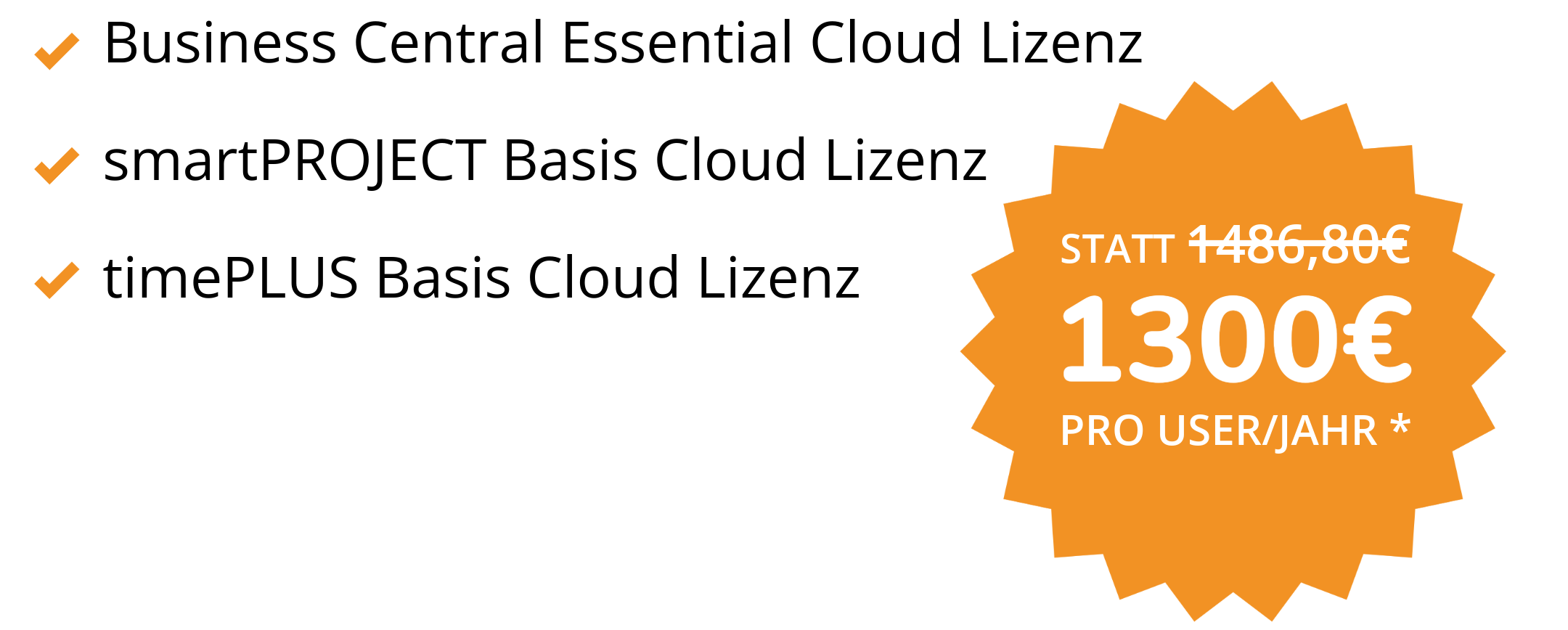 * Vorteil gilt nur bei Vertragsabschluss bis zum 31.01.2026 für das komplette Bundle aus Business Central Essential Cloud Lizenz, smartPROJECT Basis Cloud Lizenz und timePLUS Basis Cloud Lizenz.